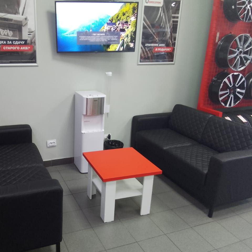 Приятно удивили работой: колеса поменяли оперативно, старые аккуратно упаковали и сложили в багажник. Видно, что мастера работают профессионально. Есть удобная зона ожидания с экраном - можно наблюдать за процессом.