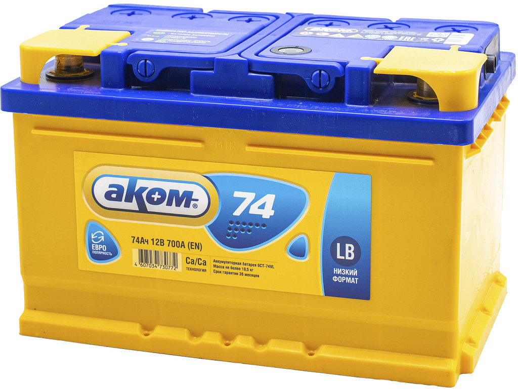 Аналоги аккумулятора AKOM 74 Ач от 700 А обратная полярность низкий тип корпуса