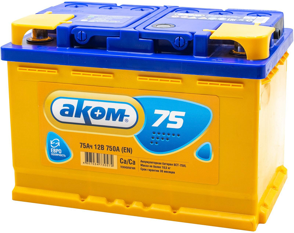Аналоги аккумулятора AKOM 75 Ач от 750 А обратная полярность европейский тип корпуса