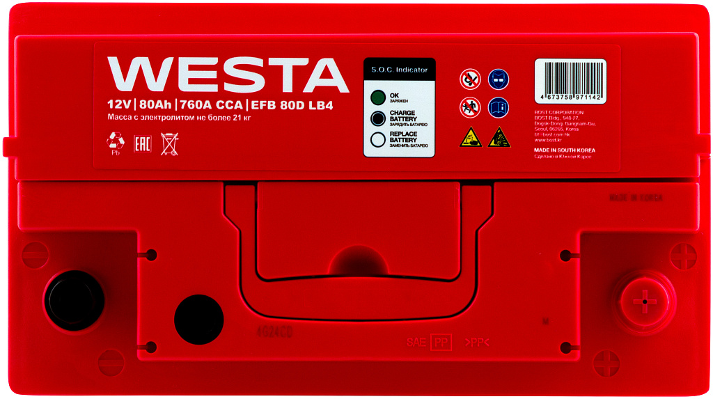 Описание аккумулятора WESTA Korea EFB 80DLB4