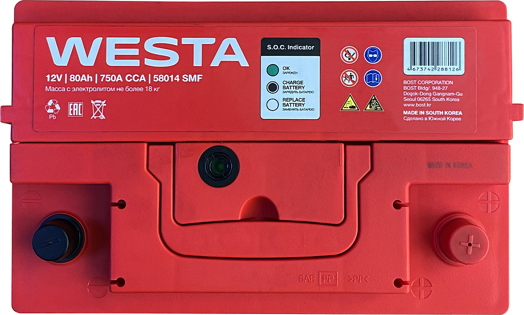 Аккумуляторы WESTA Korea SMF производятся на заводе BOST CORPORATION в Южной Корее с использованием новейших технологий и материалов премиум-класса. Эти батареи предназначены для большинства современных бензиновых и дизельных легковых автомобилей. Благодаря своей конструкции и технологии изготовления они обеспечивают надежное питание всех современных бортовых электроприборов.