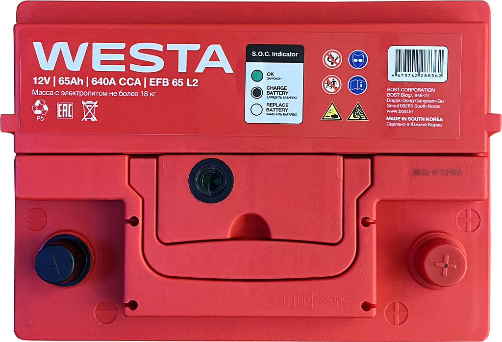 Аккумулятор WESTA Korea (EFB 65 L2) 65 Ач 640 А обратная полярность