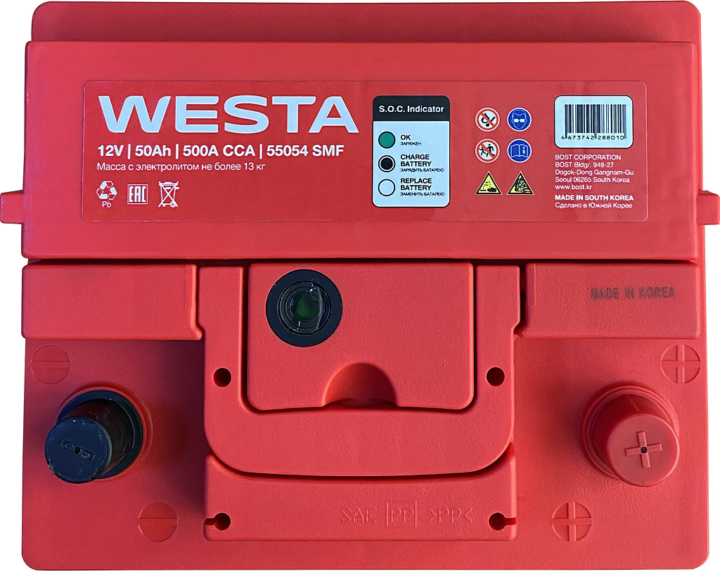 Аккумуляторы WESTA Korea SMF производятся на заводе BOST CORPORATION в Южной Корее с использованием новейших технологий и материалов премиум-класса. Эти батареи предназначены для большинства современных бензиновых и дизельных легковых автомобилей. Благодаря своей конструкции и технологии изготовления они обеспечивают надежное питание всех современных бортовых электроприборов.