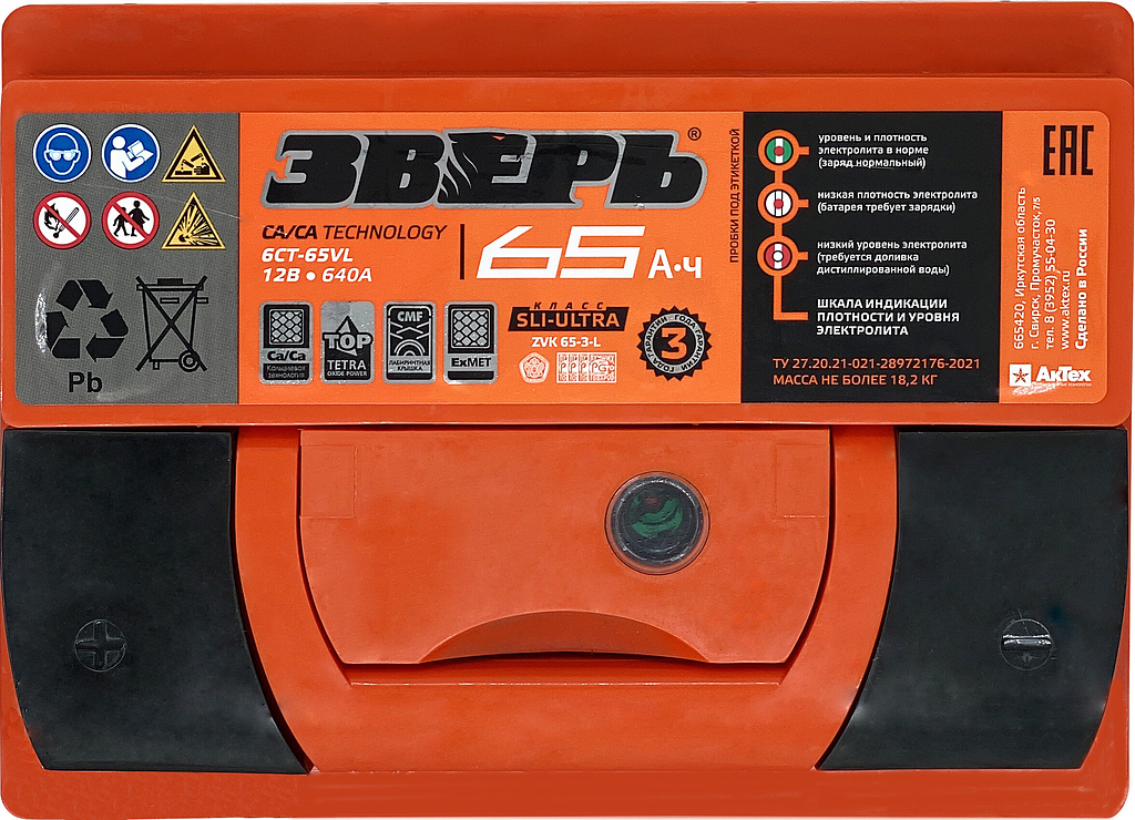 Аккумулятор ЗВЕРЬ 65 Ач 640 А прямая полярность