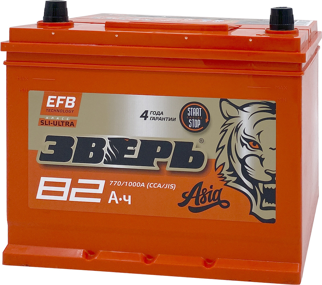 Аналоги аккумулятора ЗВЕРЬ Asia EFB 82 Ач 770 А обратная полярность азиатский тип корпуса