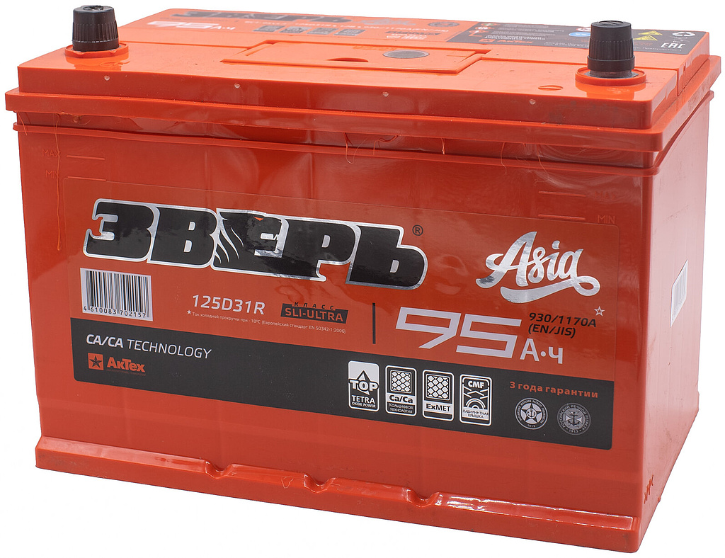 Аналоги аккумулятора ЗВЕРЬ Asia 95 Ач 930 А прямая полярность азиатский тип корпуса