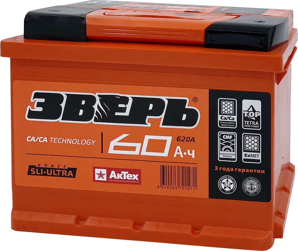 Аналоги аккумулятора ЗВЕРЬ 60 Ач от 620 А обратная полярность европейский тип корпуса