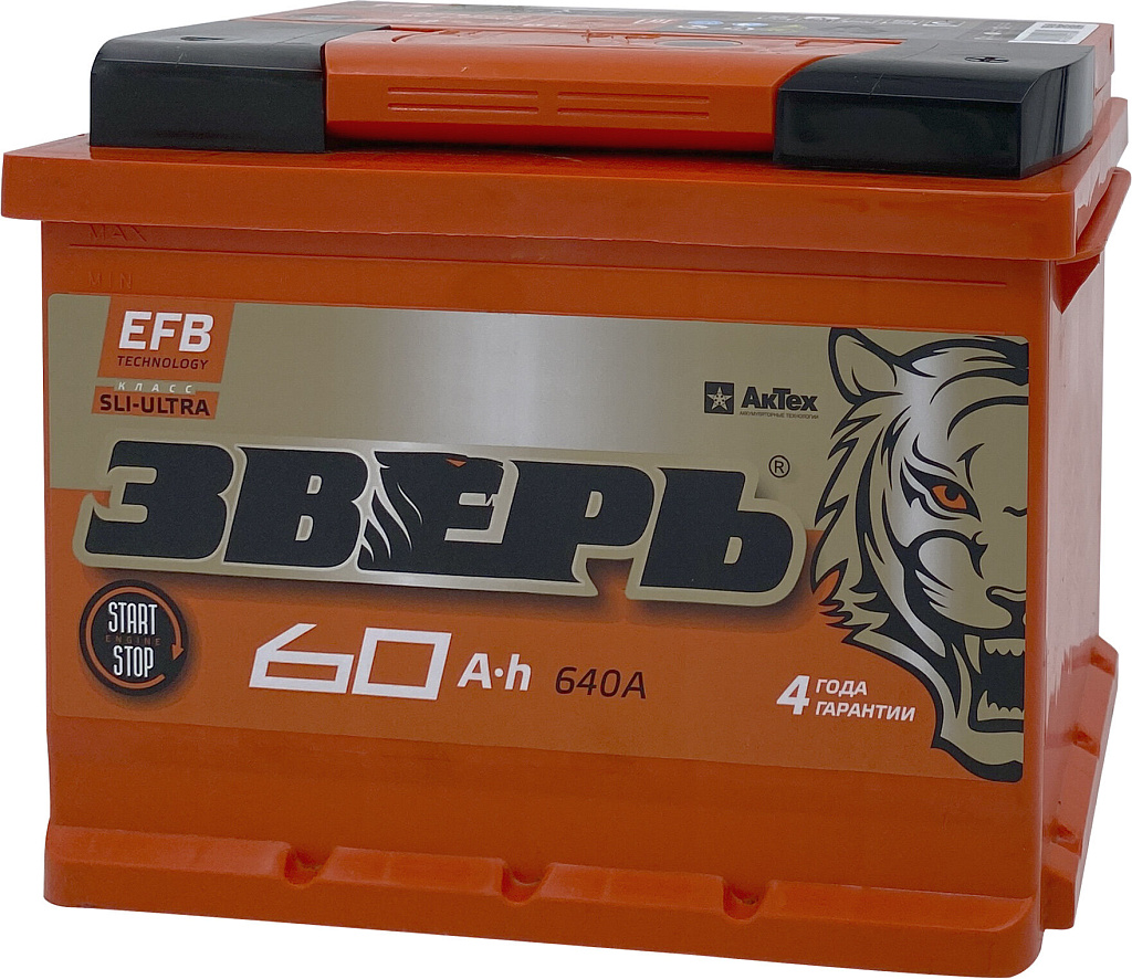 Аккумулятор ЗВЕРЬ EFB 60 Ач 640 А обратная полярность