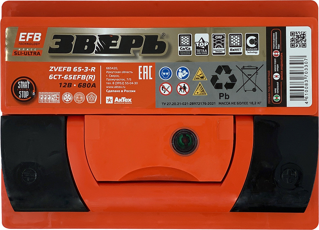 Аналоги аккумулятора ЗВЕРЬ EFB 65 Ач от 680 А обратная полярность европейский тип корпуса