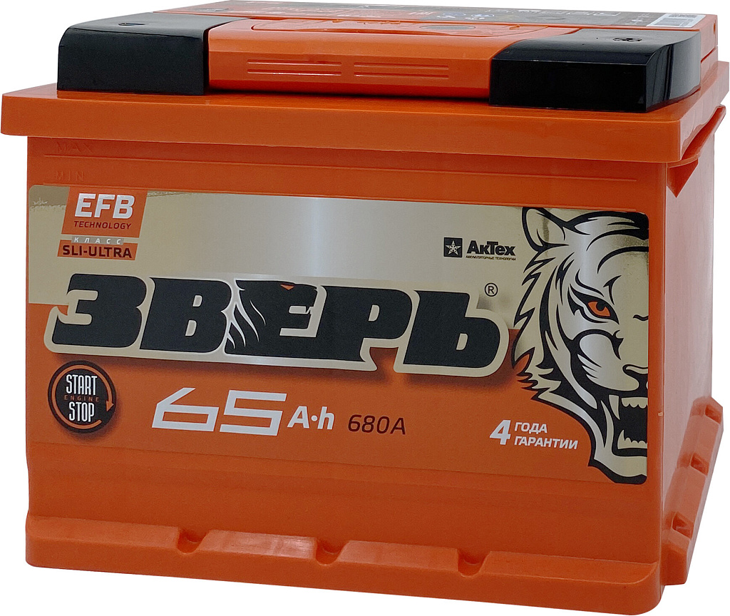 Аккумулятор ЗВЕРЬ EFB 65 Ач 680 А обратная полярность